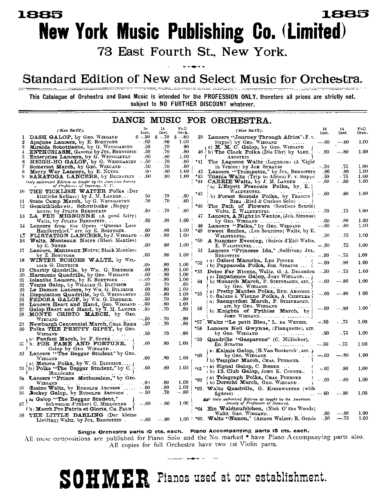 | First Publication | 1885 (New York: New York Music Publishing Co. (Limited)) |
