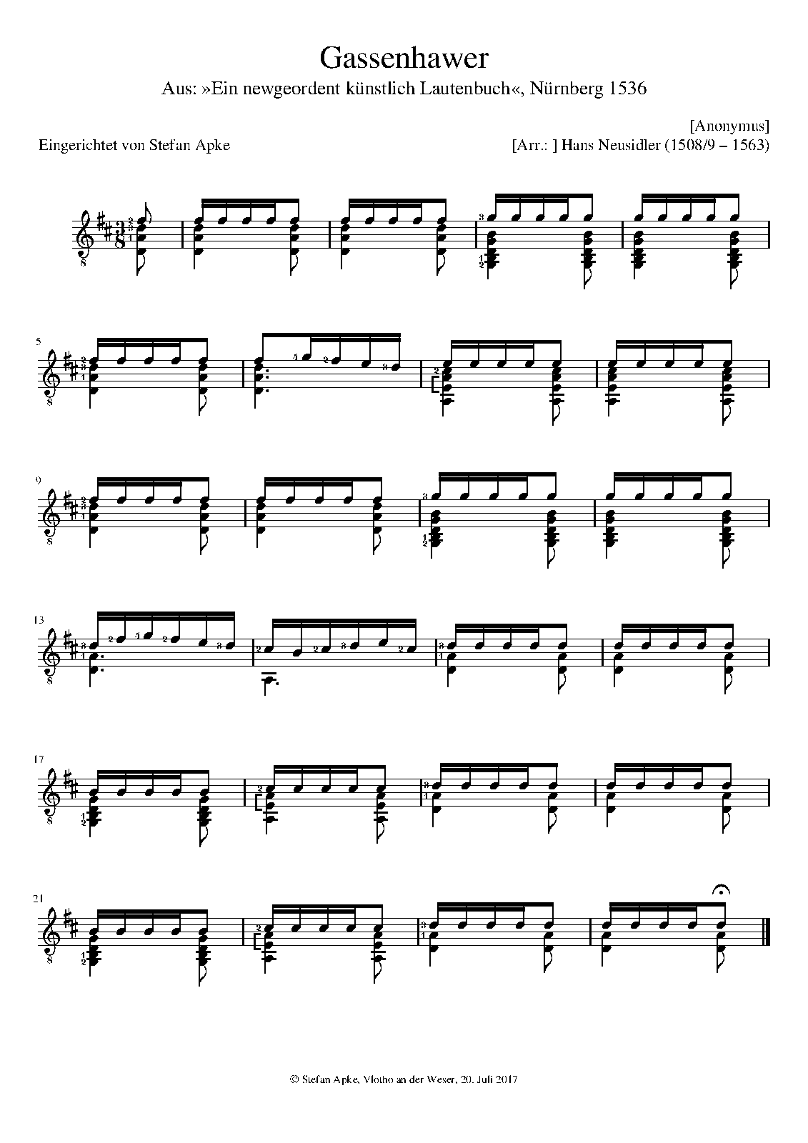 | First Publication | 1536 in Ein newgeordent künstlich Lautenbuch |