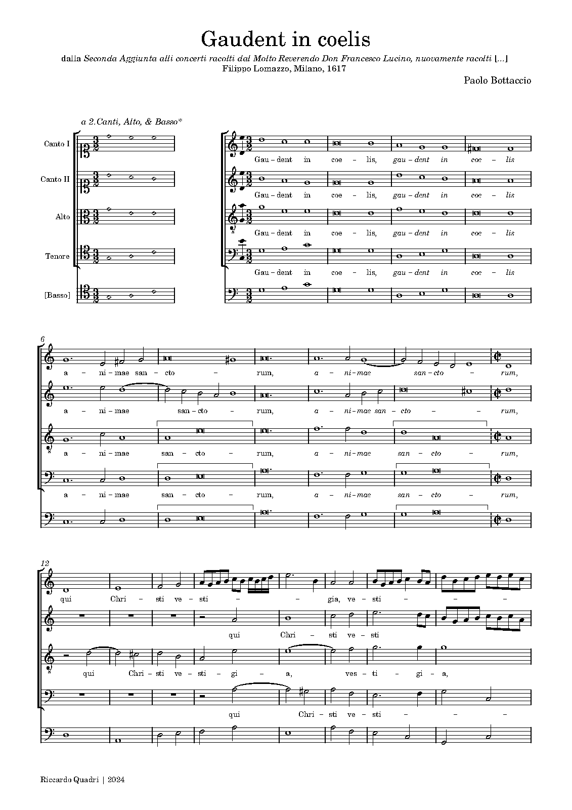 | First Publication | 1617 in "Partitura della Seconda Aggiunta alli concerti racolti dal Molto Reverendo Don Francesco Lucino nuovamente racolti da Filippo Lomazzo" |