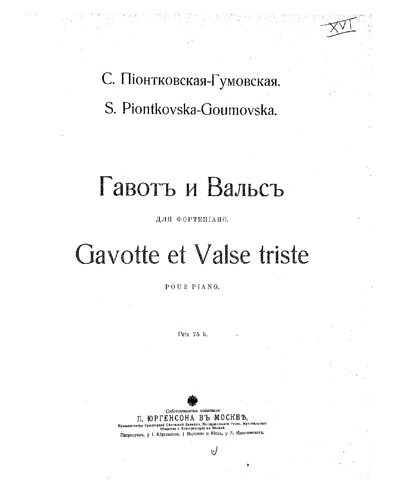 | Composer | Piontkovskaya-Gumovskaya, Sofia |