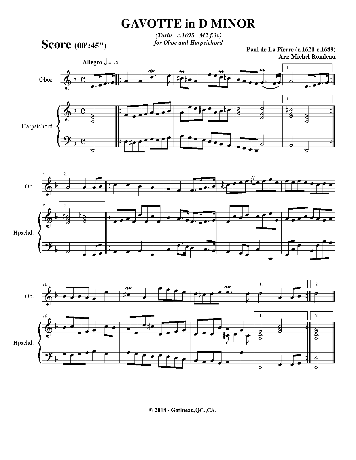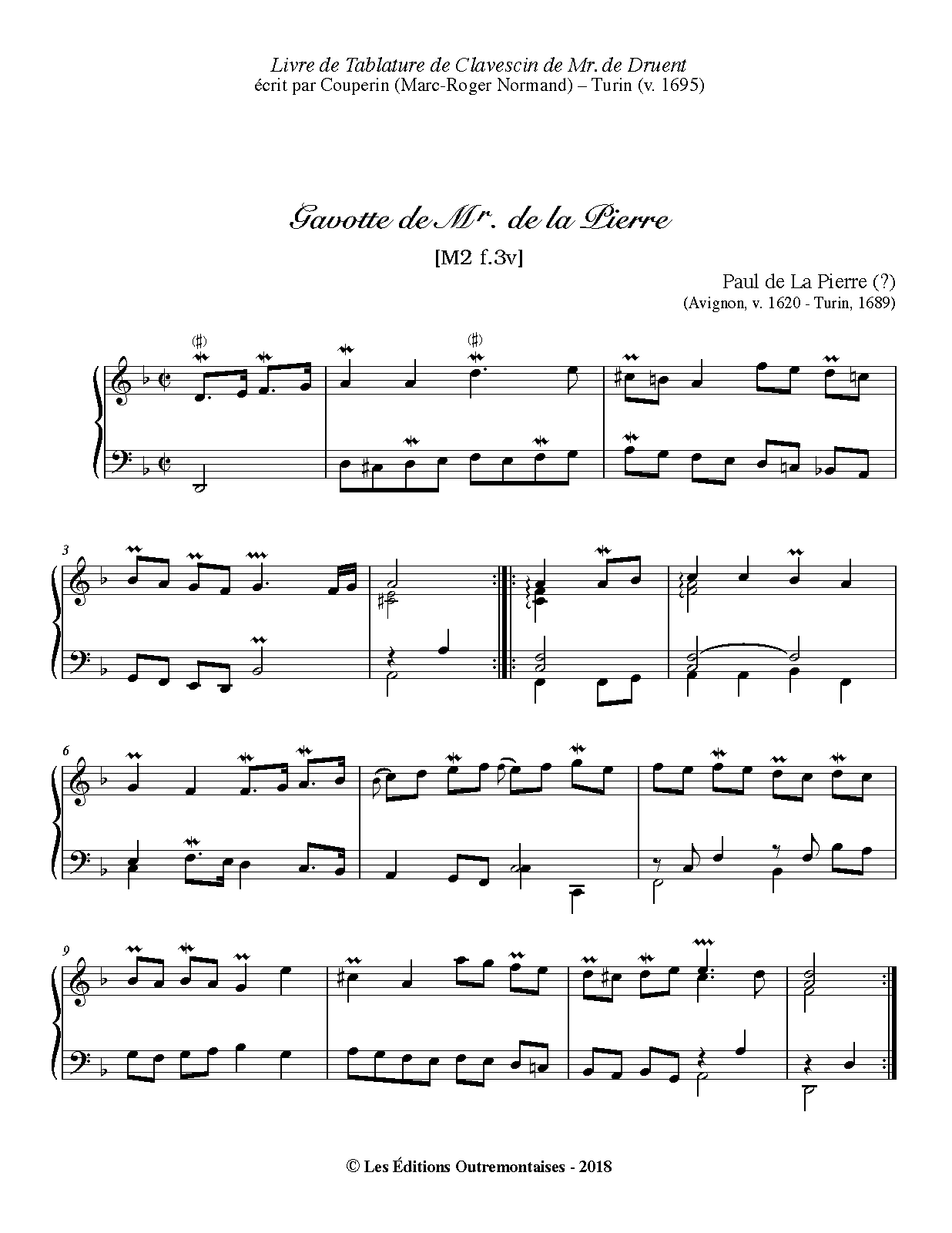2nd piece in the Livre de Tablature de Clavescin de Mr. de Druent par Couperin (Marc-Roger Normand), Turin, ca.1695. Numbering according to the table of content in the Minkoff facsimile.