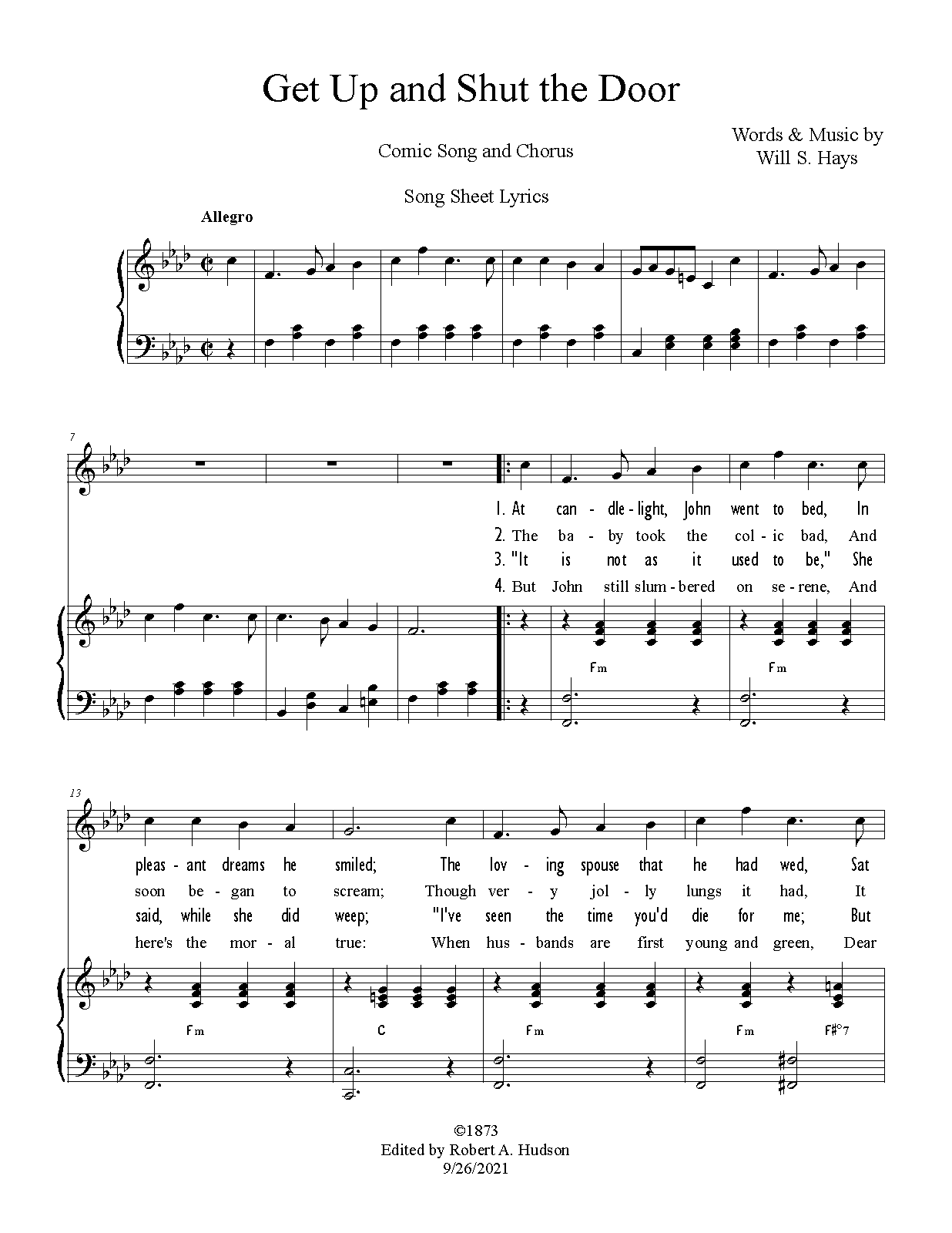 There are two sets of lyrics for the song: the ones published with the song are pro-husband, anti-wife; the song sheet is pro-wife, anti-husband.