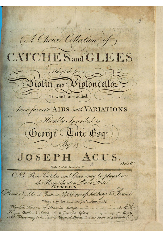 | Alternative. Title | A Choice Collection of Catches and Glees adapted for a violin and violoncello, to which are added some favorite Airs with Variations. ... NB. These Catches and Glees may be played on the Harpsichord or Piano Forte |