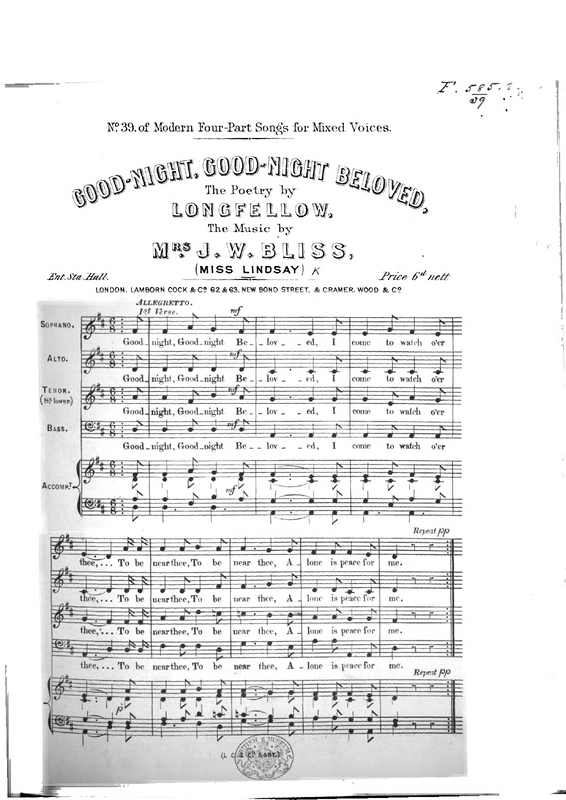 | Alternative. Title | Good-Night, good-night beloved. Part song |