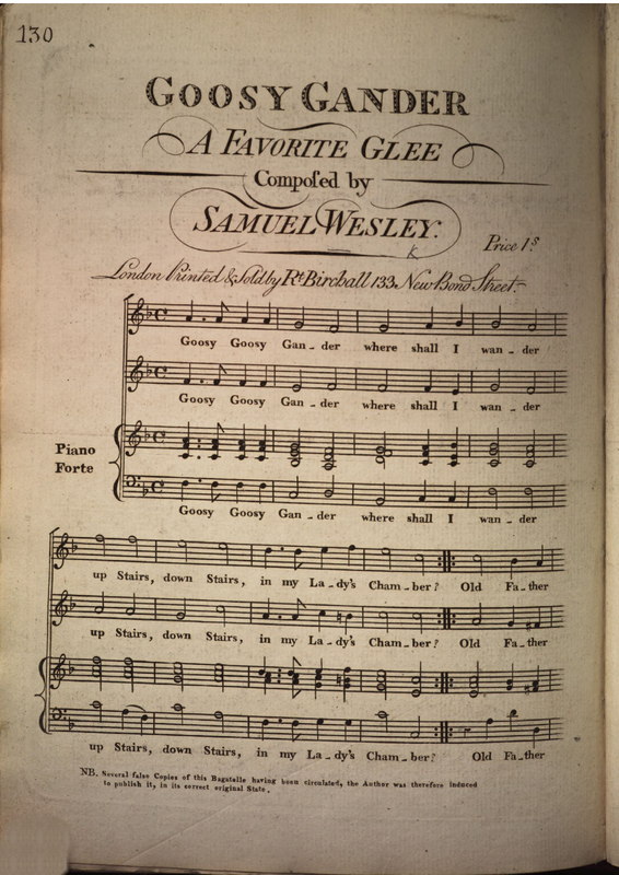 | Alternative. Title | A Favorite Glee; Goosy goosy gander, where shall I wander |