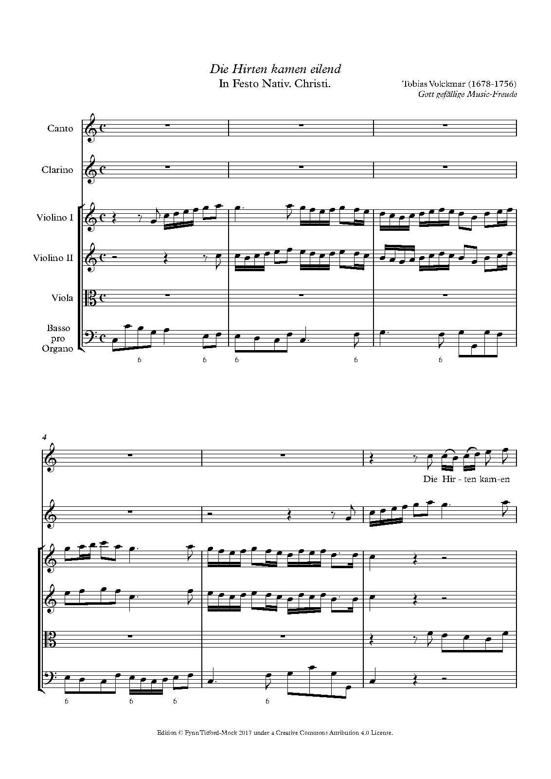 - Christmastide. Die Hirten kamen eilend. soprano, trumpet (clarino), 2 violins, viola, continuo
