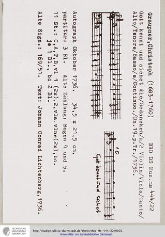 | Work Title | Gott kennt und siehet die Gedanken, GWV 1160/36 |