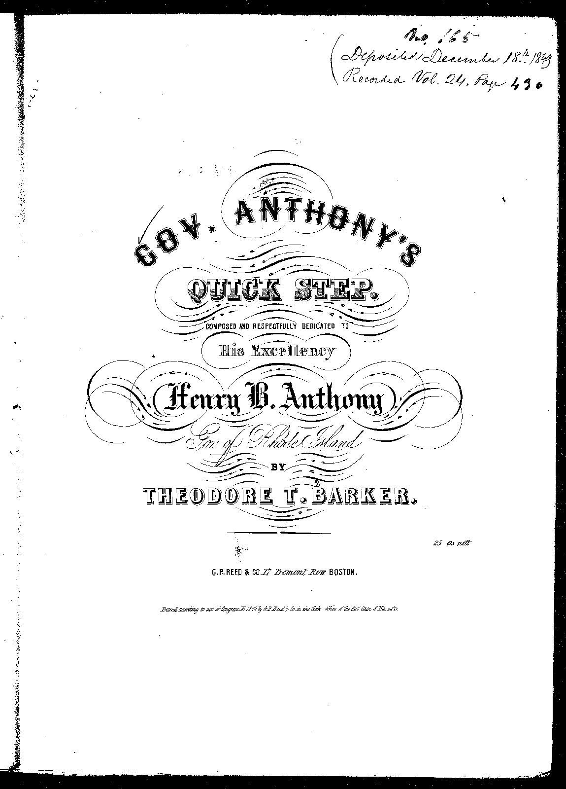 | Dedication | His Excellency Henry B. Anthony, Gov. of Rhode Island |