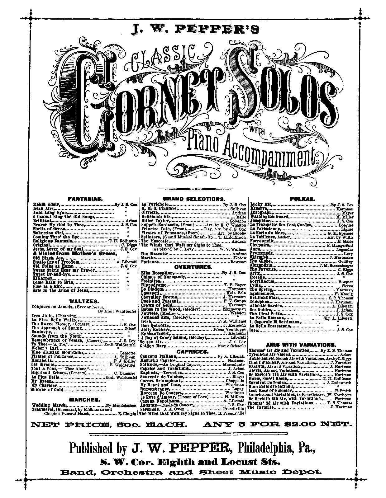 | InstrDetail | flute (or piccolo), 2 clarinets, 2 horns, 2 cornets, trombone, drums, piano, strings |
