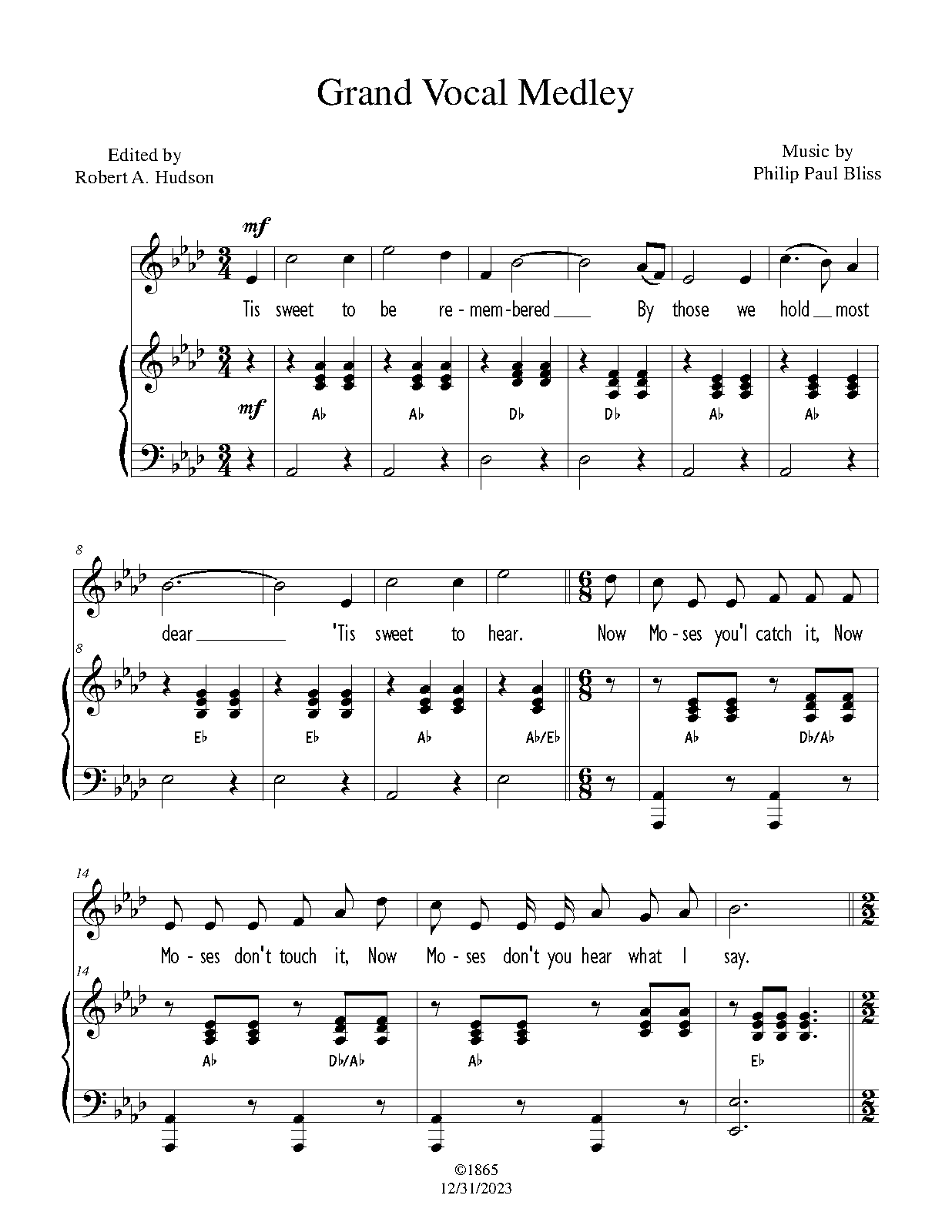 | Genre Categories | Songs; Medleys; For voice, piano; |
