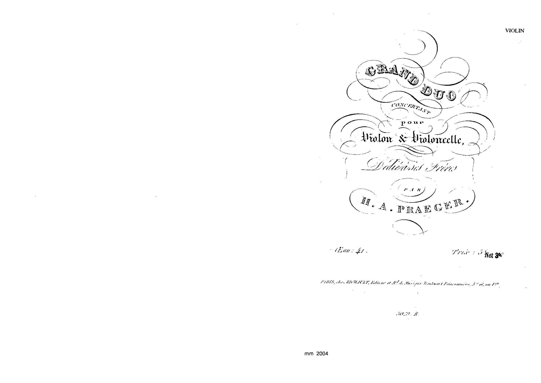 | Genre Categories | Duets; Concertantes; For violin, cello; |