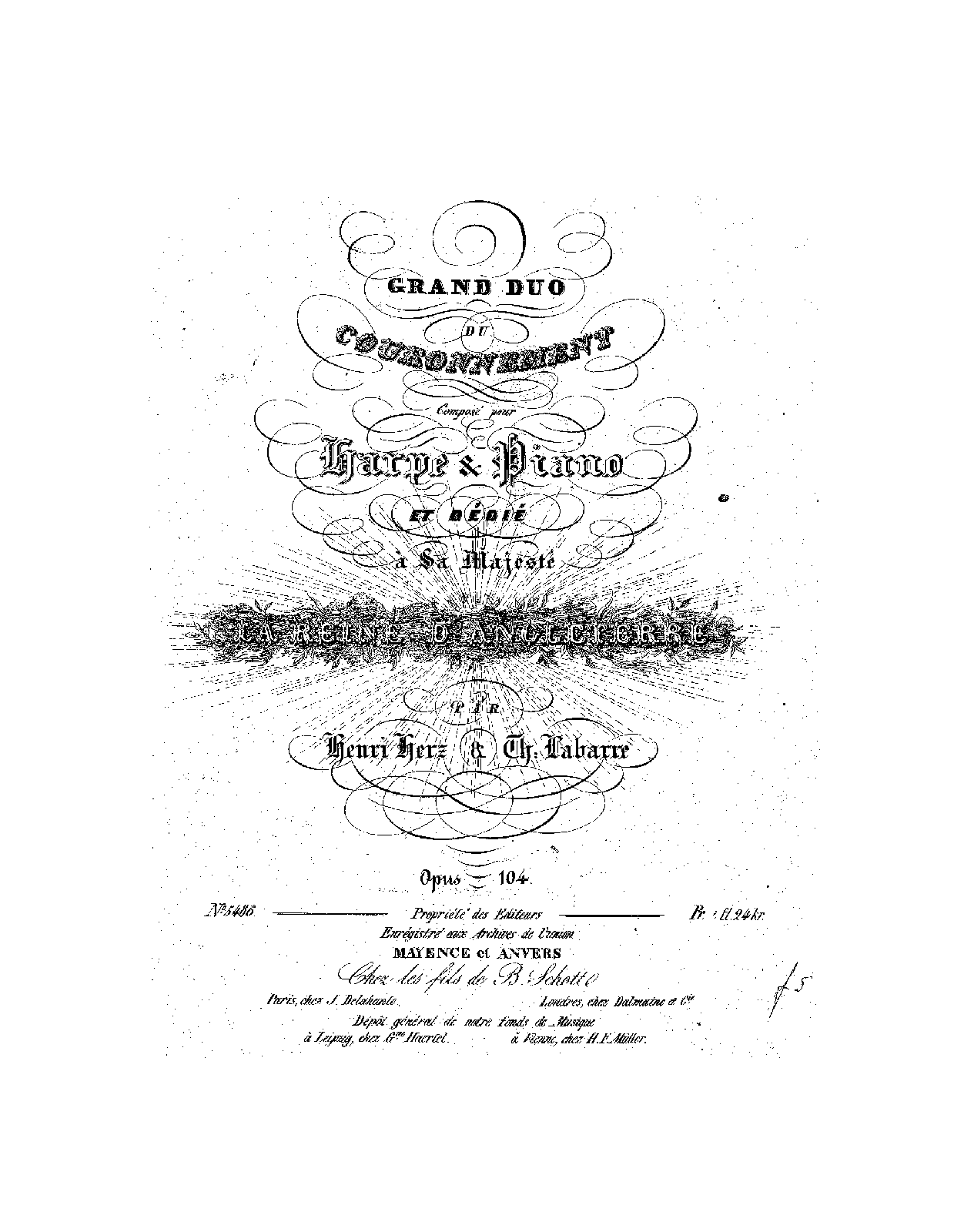 | Extra Information | Also released in 1839 in a version for piano and harp (with Théodore Labarre) and for piano solo (entitled Fantaisie du Couronnement). |
