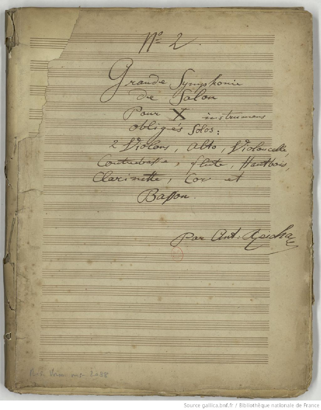 | Alternative. Title | No.2. Grande Symphonie de Salon pour X instrumens obliges solos: 2 Violons, Alto, Violoncelle, Contrebasse, Flute, Hautbois, Clarinette, Cor et Basson |