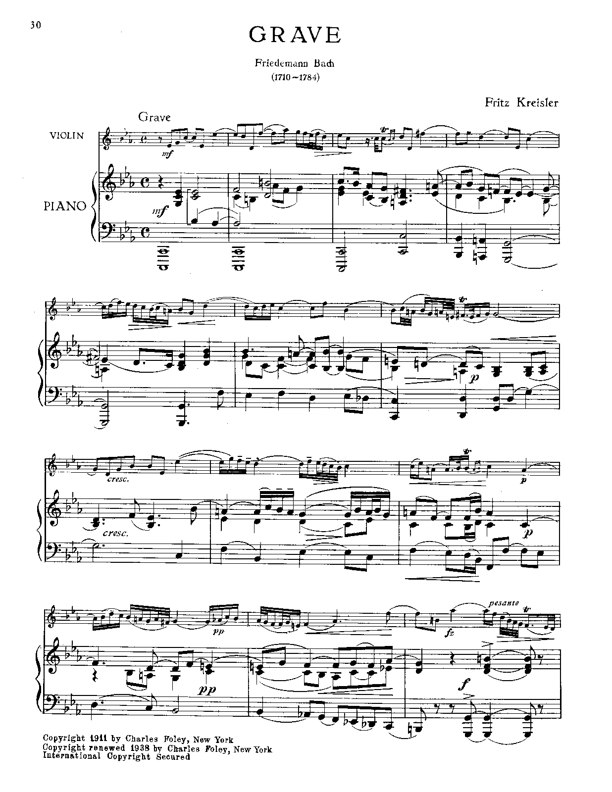 Grave in the Style of W.F. Bach (Kreisler, Fritz)