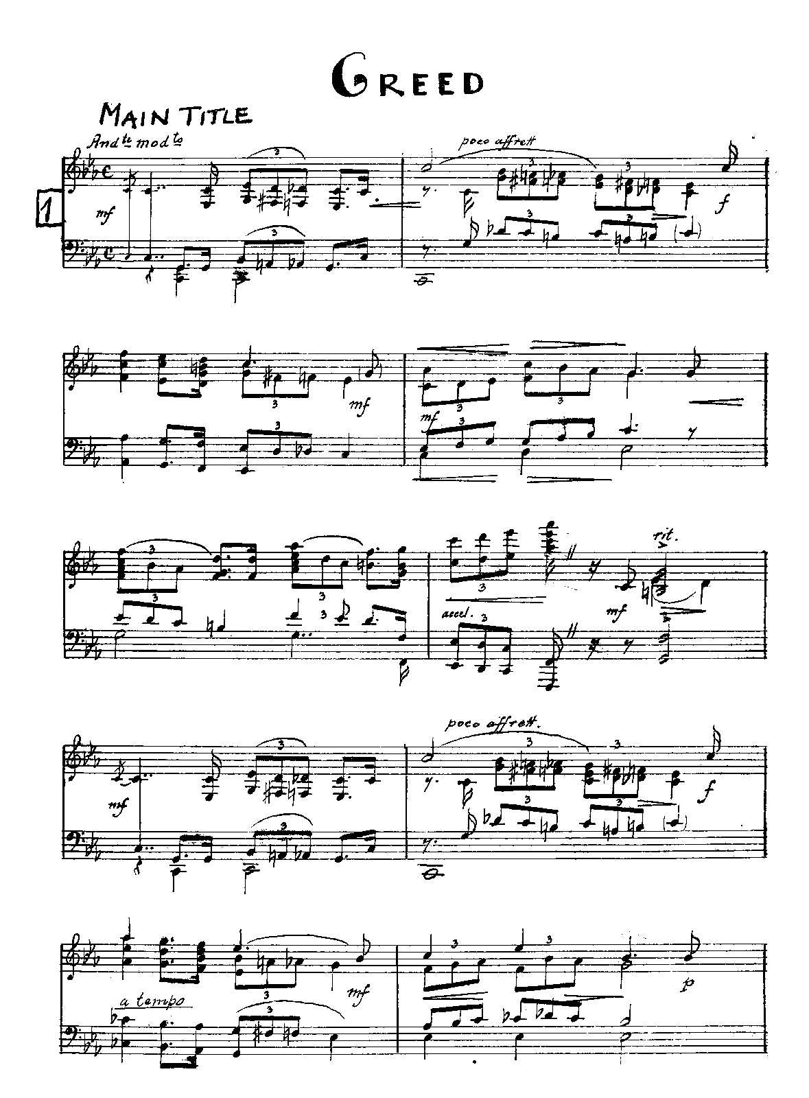 Misc. Notes Original score for the 1924 film by Erich von Stroheim; Published without a copyright notice
