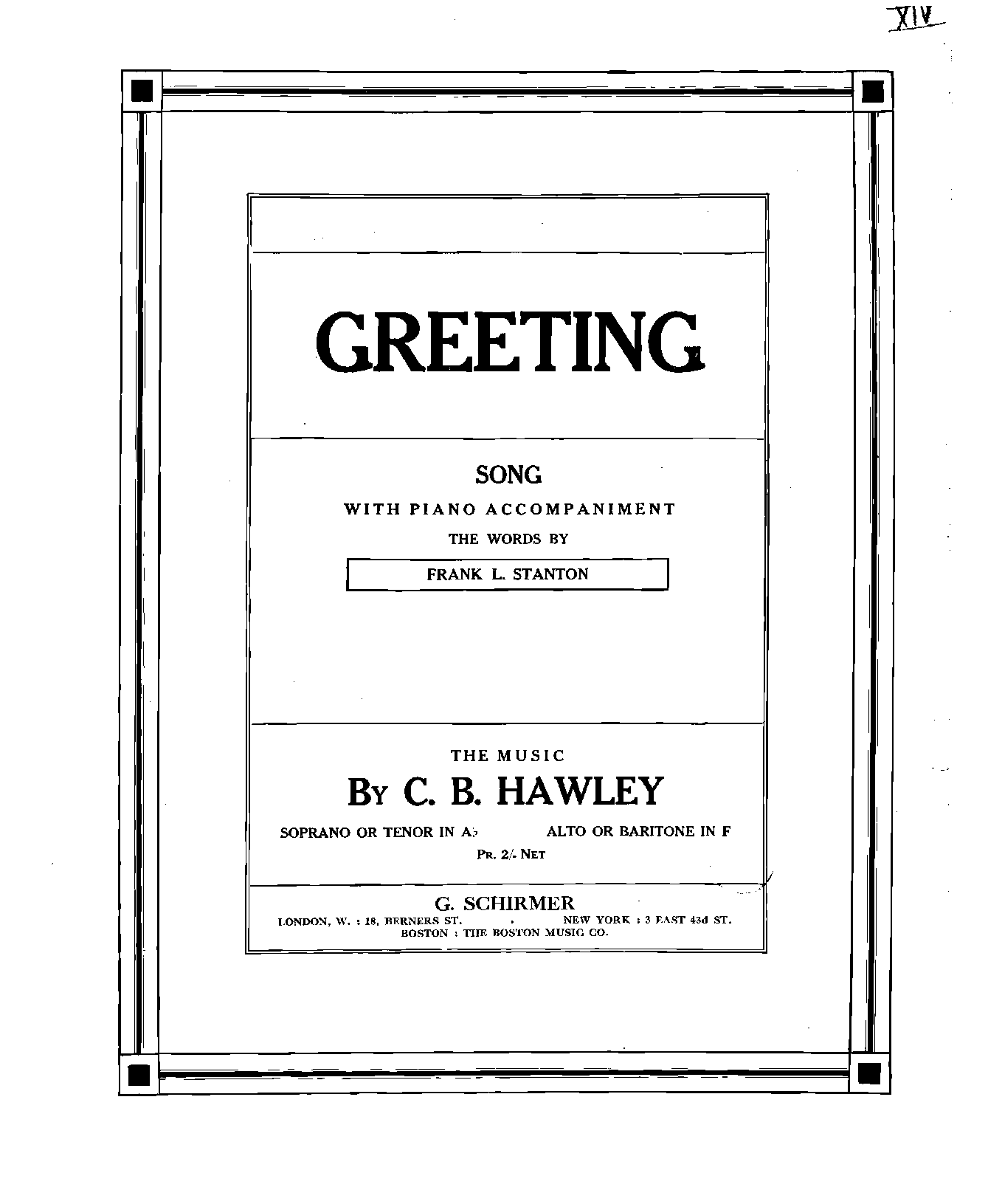 | Genre Categories | Songs; For voice, piano; For voices with keyboard; |