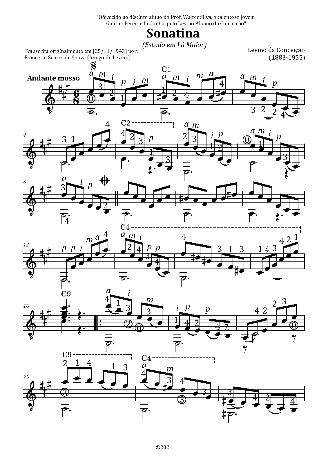 Misc. Notes This piece was copied by the Brazilian guitarist and composer Francisco Soares de Souza, around the 1940s. Francisco Soares was a friend of Levino da Conceição.