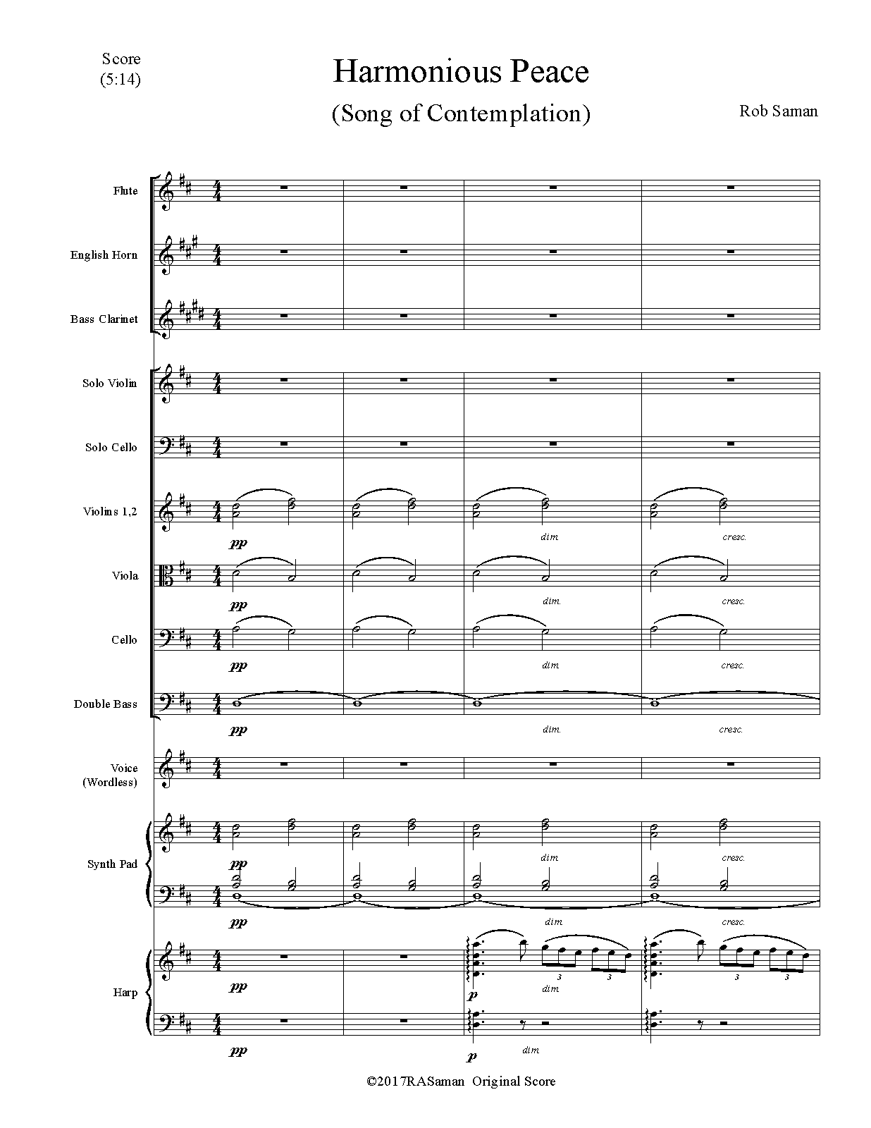 | Instrumentation | voice Orchestra: flute, English horn, bass clarinet, synthesizer, harp, strings (including solo violin, solo cello) |