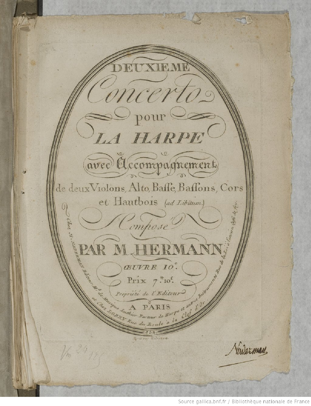 | Alternative. Title | Deuxieme Concerto pour la Harpe avec accompagnement de deux Violons, Alto, Basse, Bassons, Cors et Hautbois (ad Libitum) |