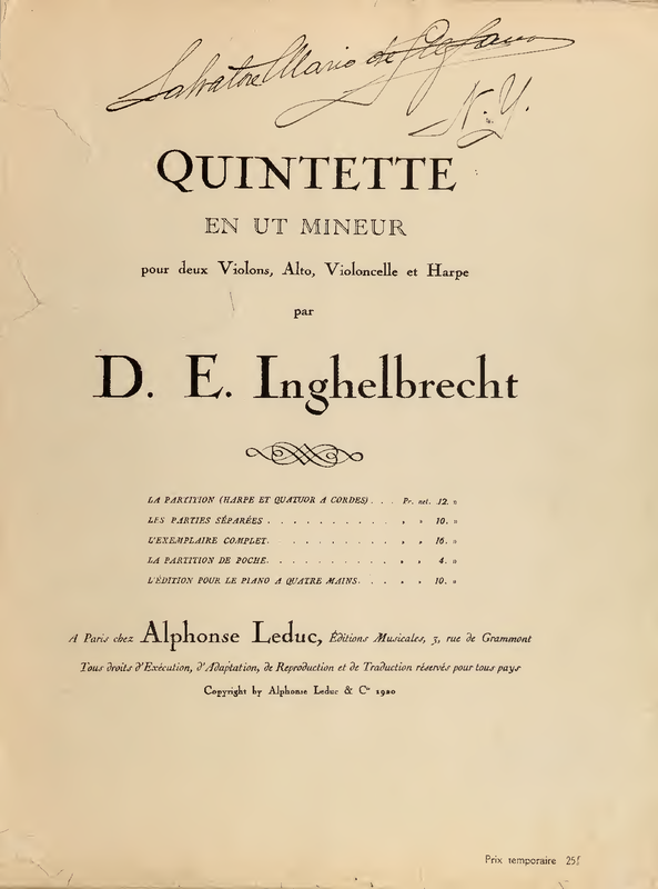 | Genre Categories | Quintets; For harp, 2 violins, viola, cello; Scores featuring the violin; |