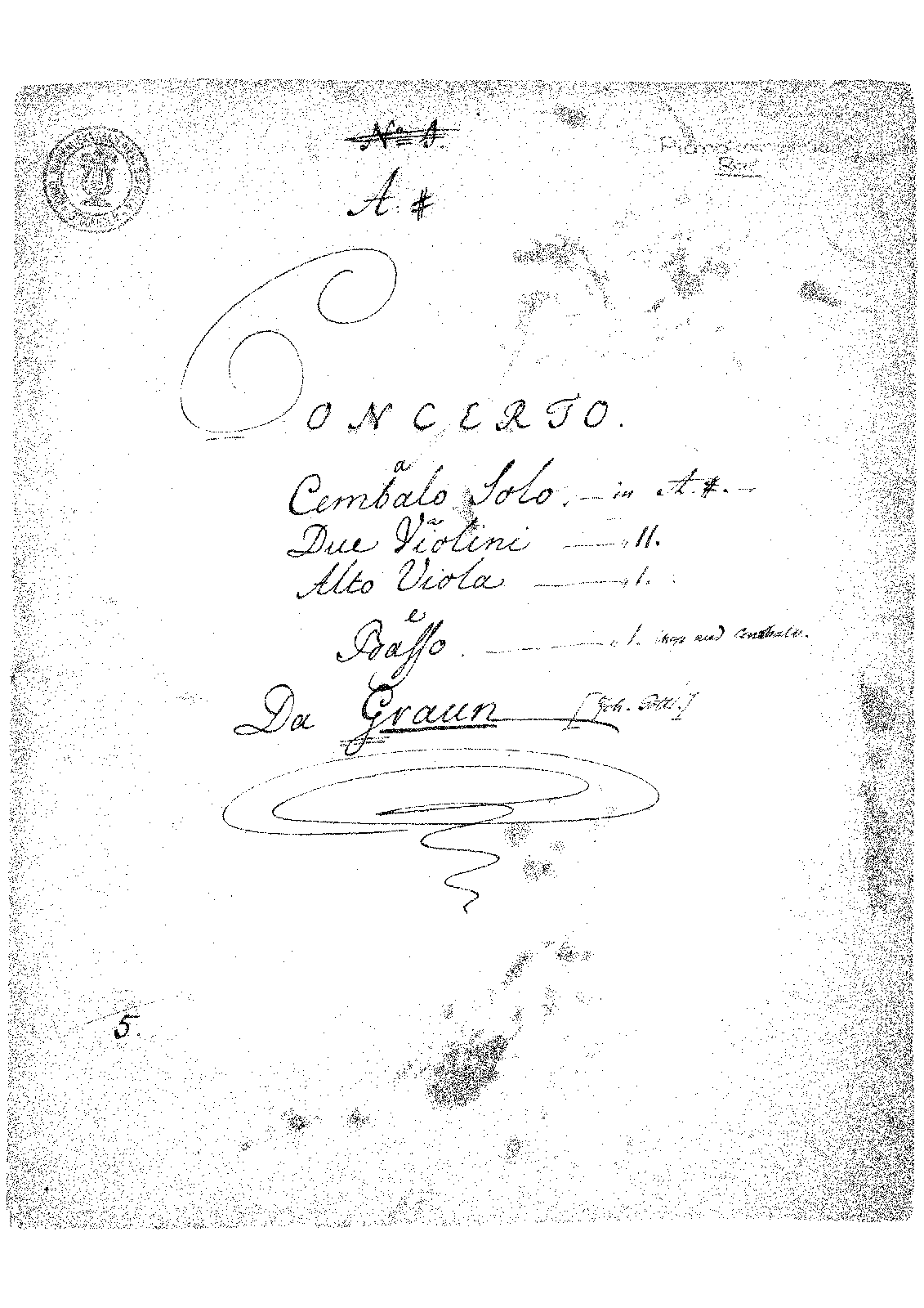 No.5 from Six concertos for the harpsichord or organ compos'd by sigr. Graun and Agrell. Opera 2da