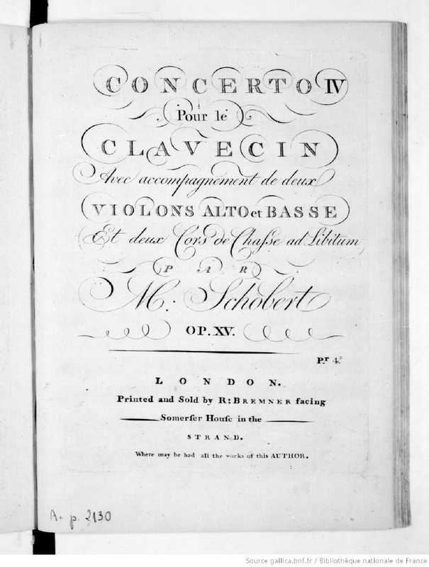 | Alternative. Title | Concerto IVe pour le Clavecin avec accompagnement de deux Violons, deux cors de chasse ad libitum. alto et basse |