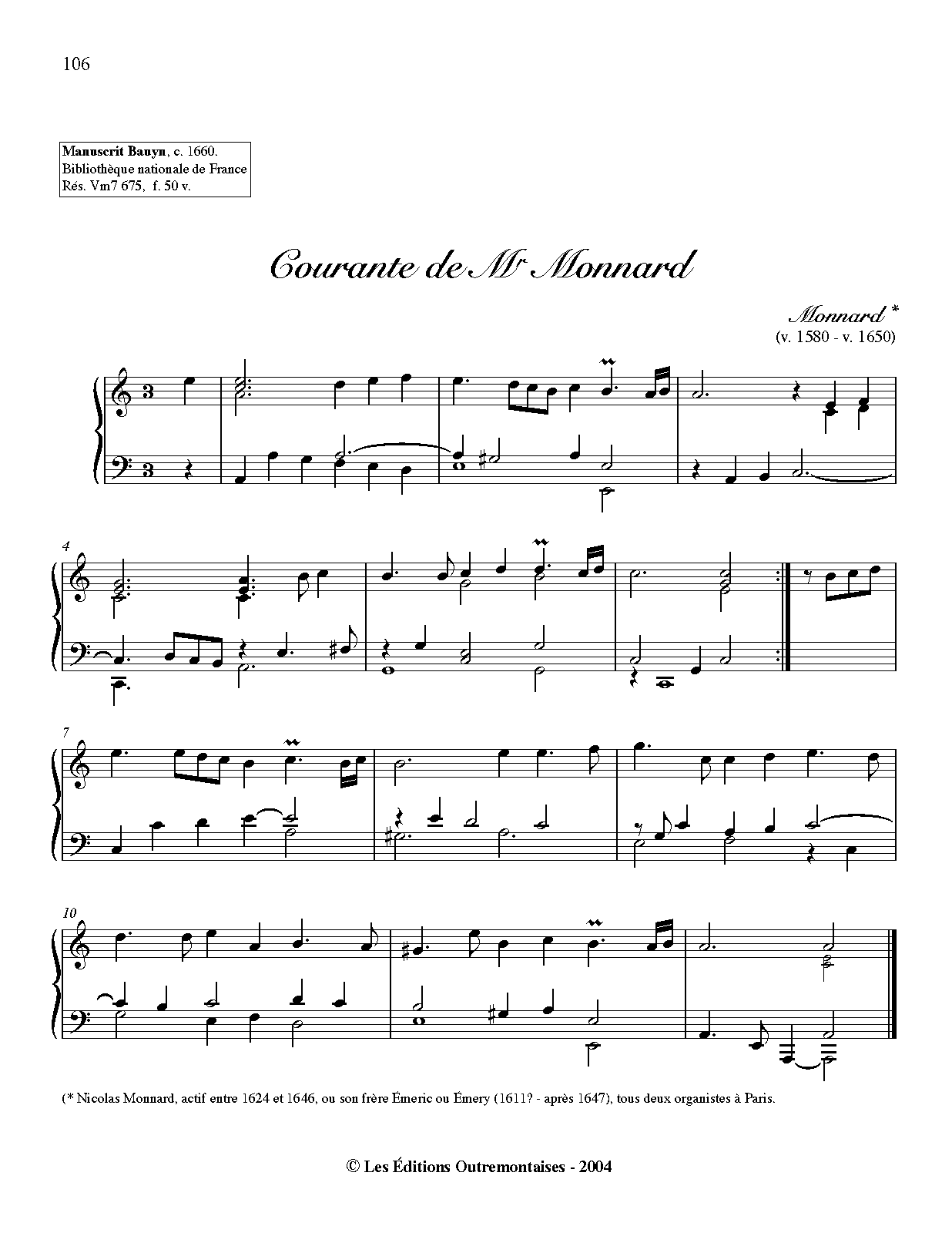 | Manuscript Sources | Bauyn Manuscript. F-Pn, Rés.Vm7 674–675 Mss copy (Sarabande only), ca.1690-99. B-Bc, 27220 |
