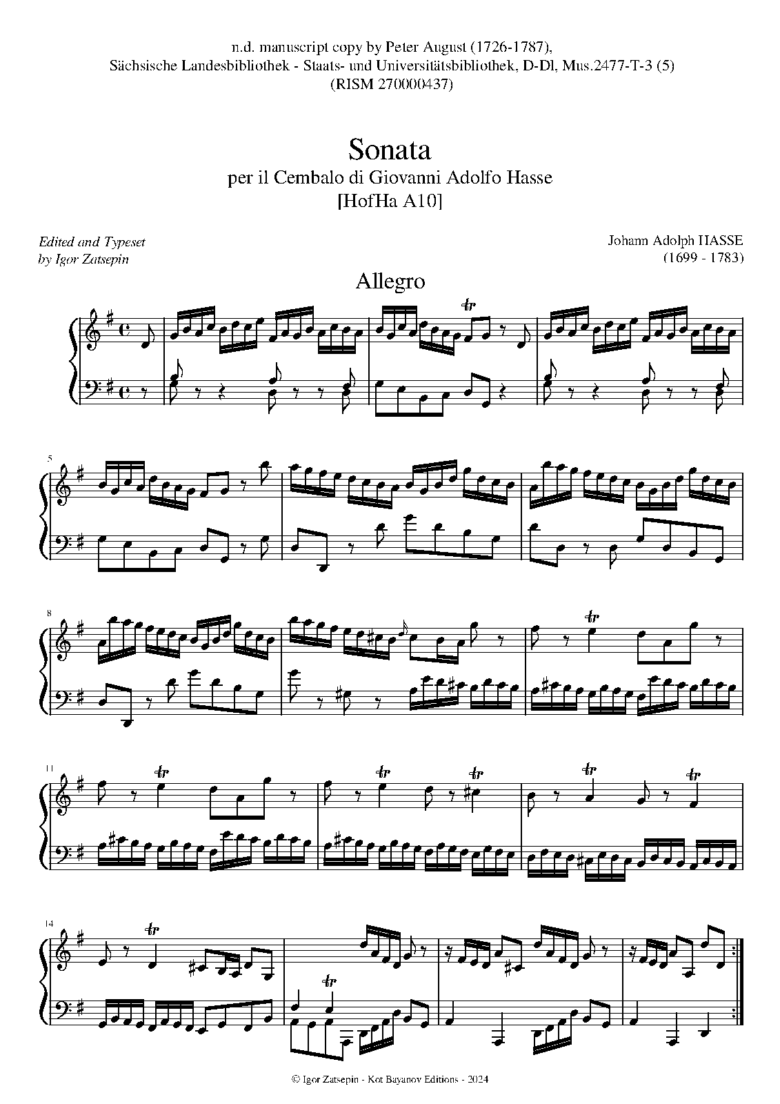 | Alternative. Title | Sonata per il Cembalo di Giovanni Adolfo Hasse |