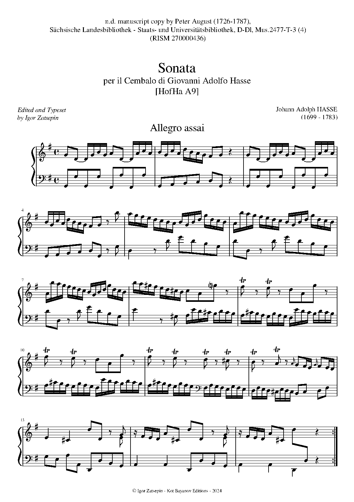 | Alternative. Title | Sonata per il Cembalo di Giovanni Adolfo Hasse |