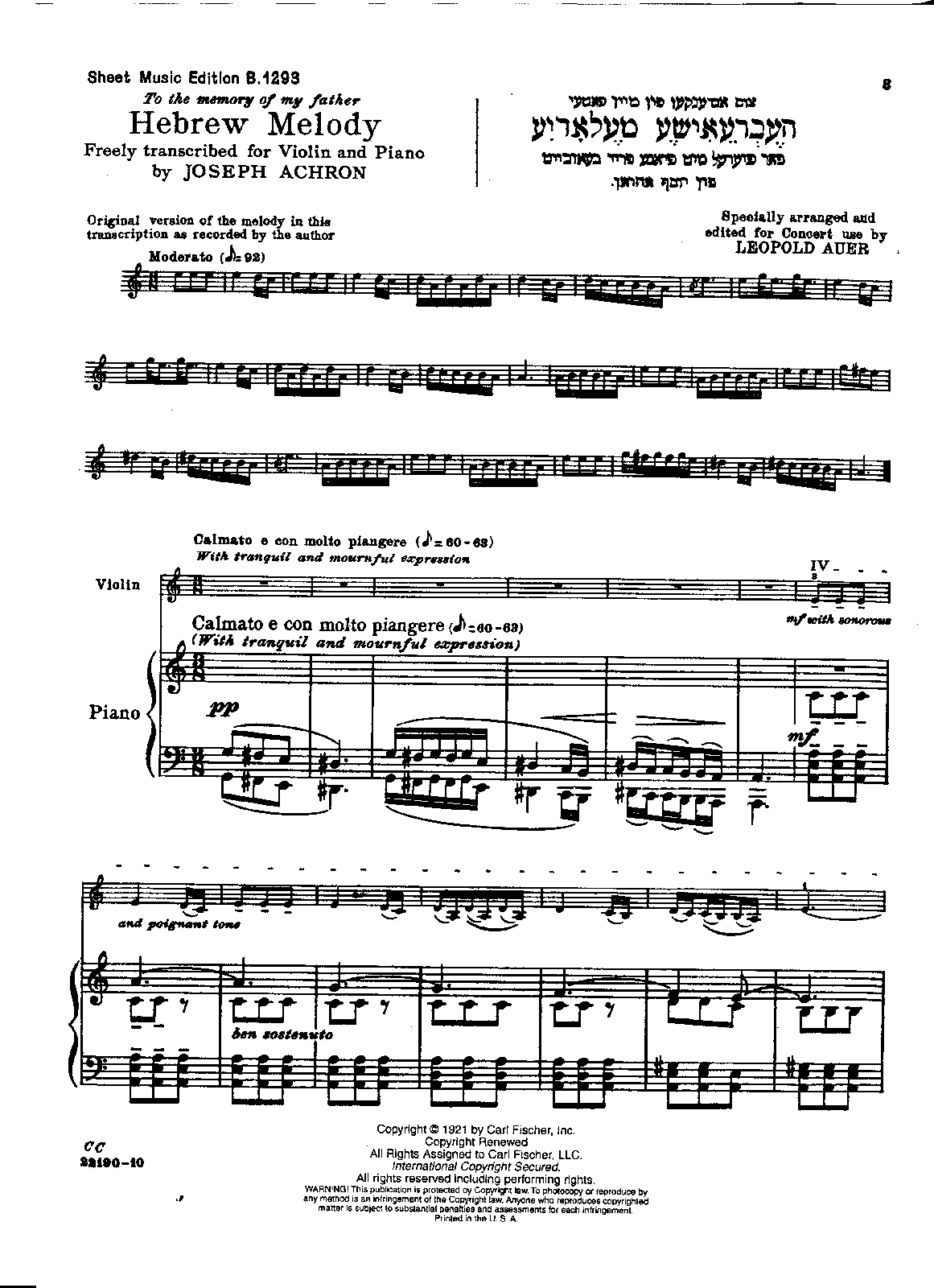 Hebrew Melody, Op.33 (Achron, Joseph)