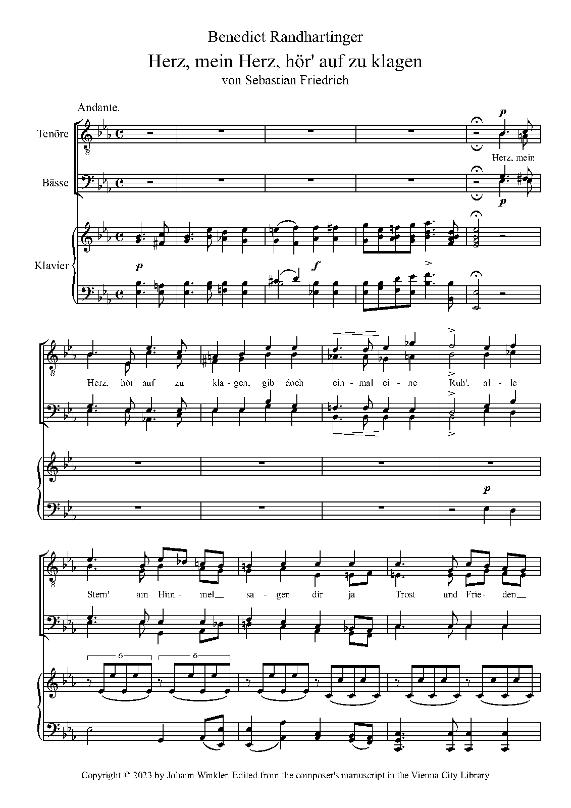 | Work Title | Herz, mein Herz, hör' auf zu klagen |