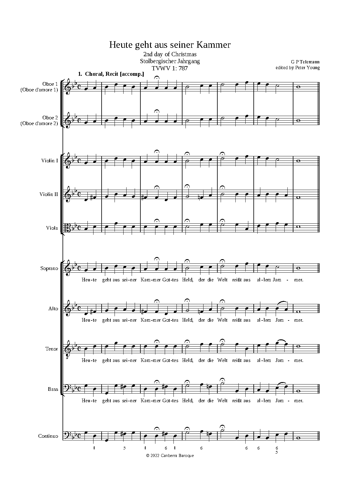 From Stolbergischer Jahrgang, 2nd day of Christmas. Oboes d'amore used instead of oboes in one aria.