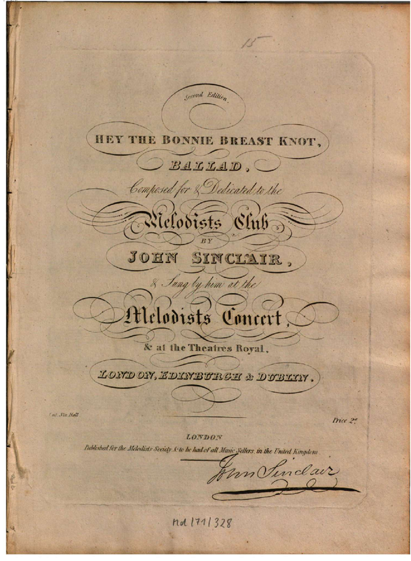 | Text Incipit | Hey the bonnie, ho the bonnie, hey the bonnie breast-knots |