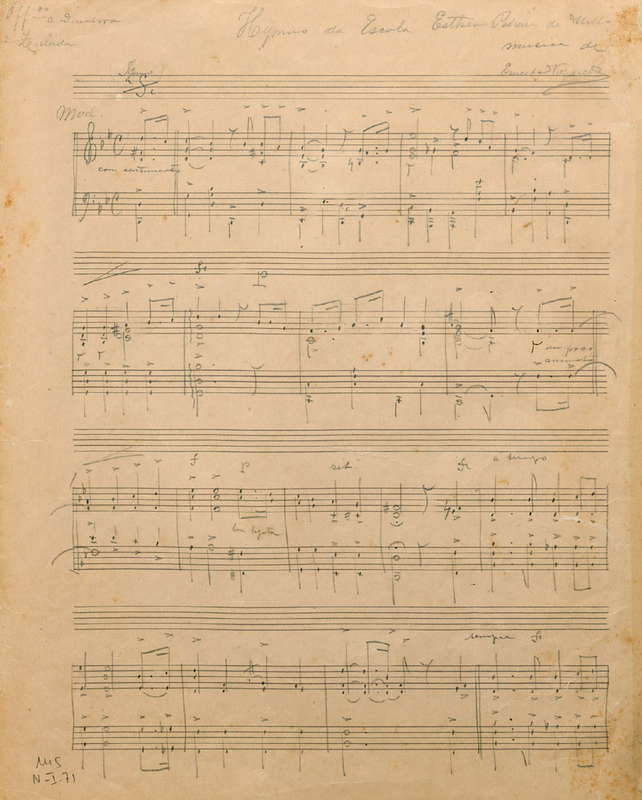 According to the Nazareth website, the text has disappeared. It is possible the students at the school knew the words and melody, and the only person who needed music was the pianist.