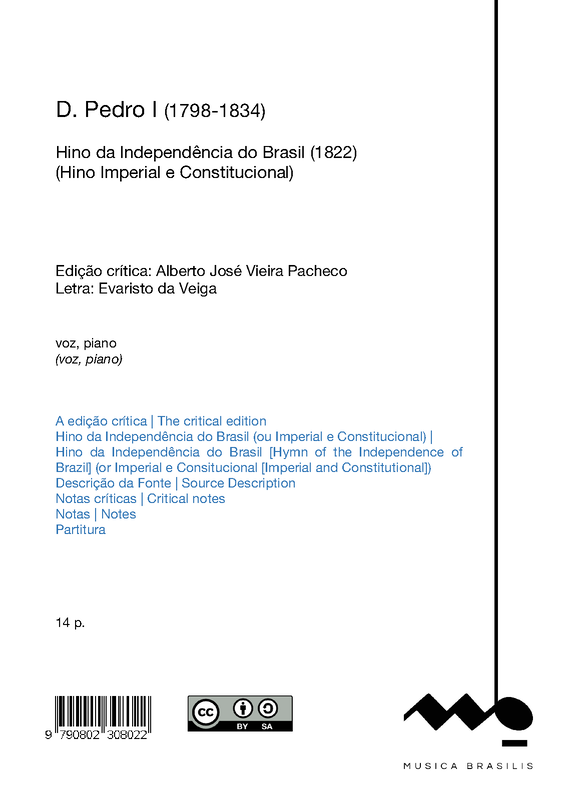 Alternative. Title Hymno, Imperial, e Constitucional. Composto por S. M. I. o Senhor Dom Pedro 1º. / Marcha nacional do Brazil / Hino da Independência