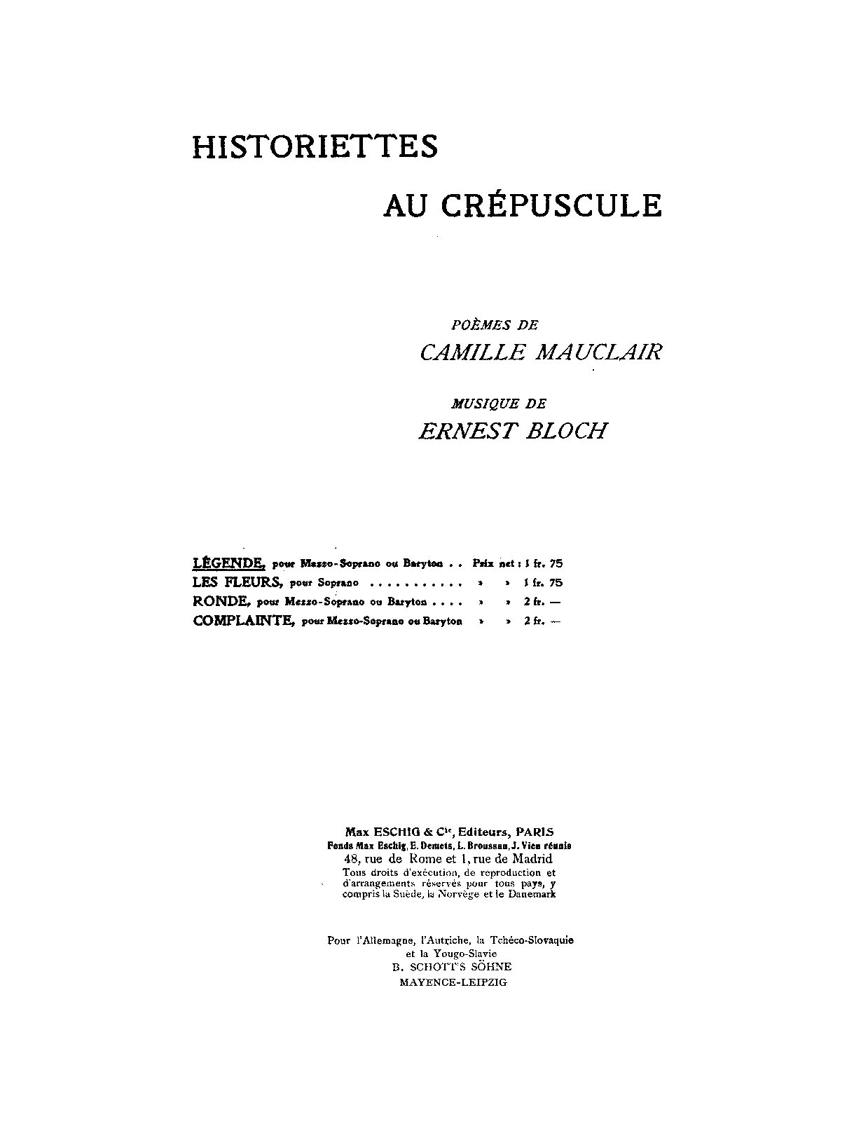 Historiettes au crépuscule, B.30 (Bloch, Ernest)