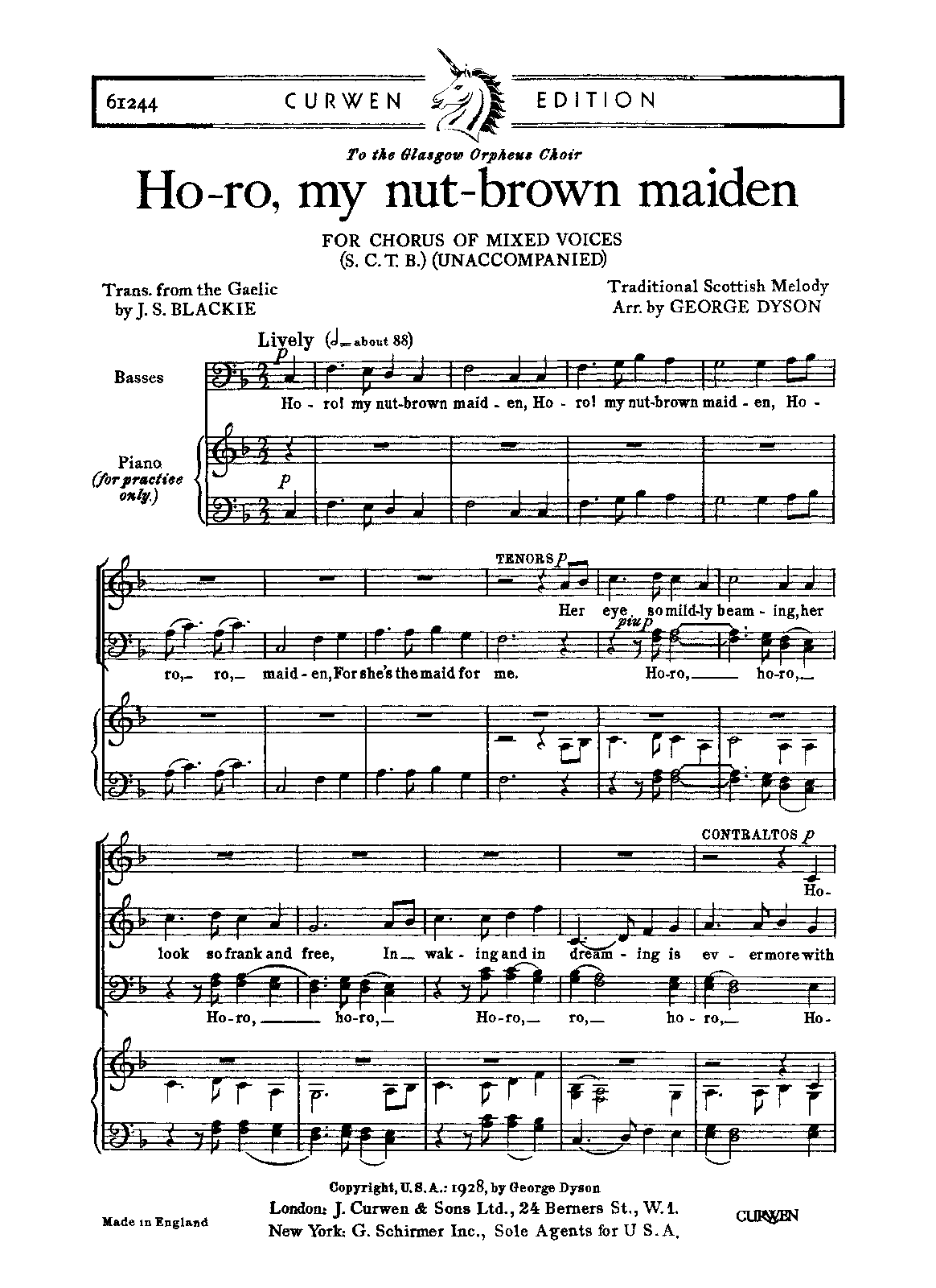Publisher. Info. London: J. Curwen & Sons, 1928. Plate 61244.