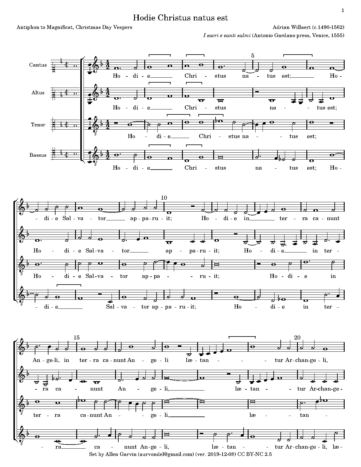 | Librettist | Antiphon to Magnificat, Christmas Day Vespers |