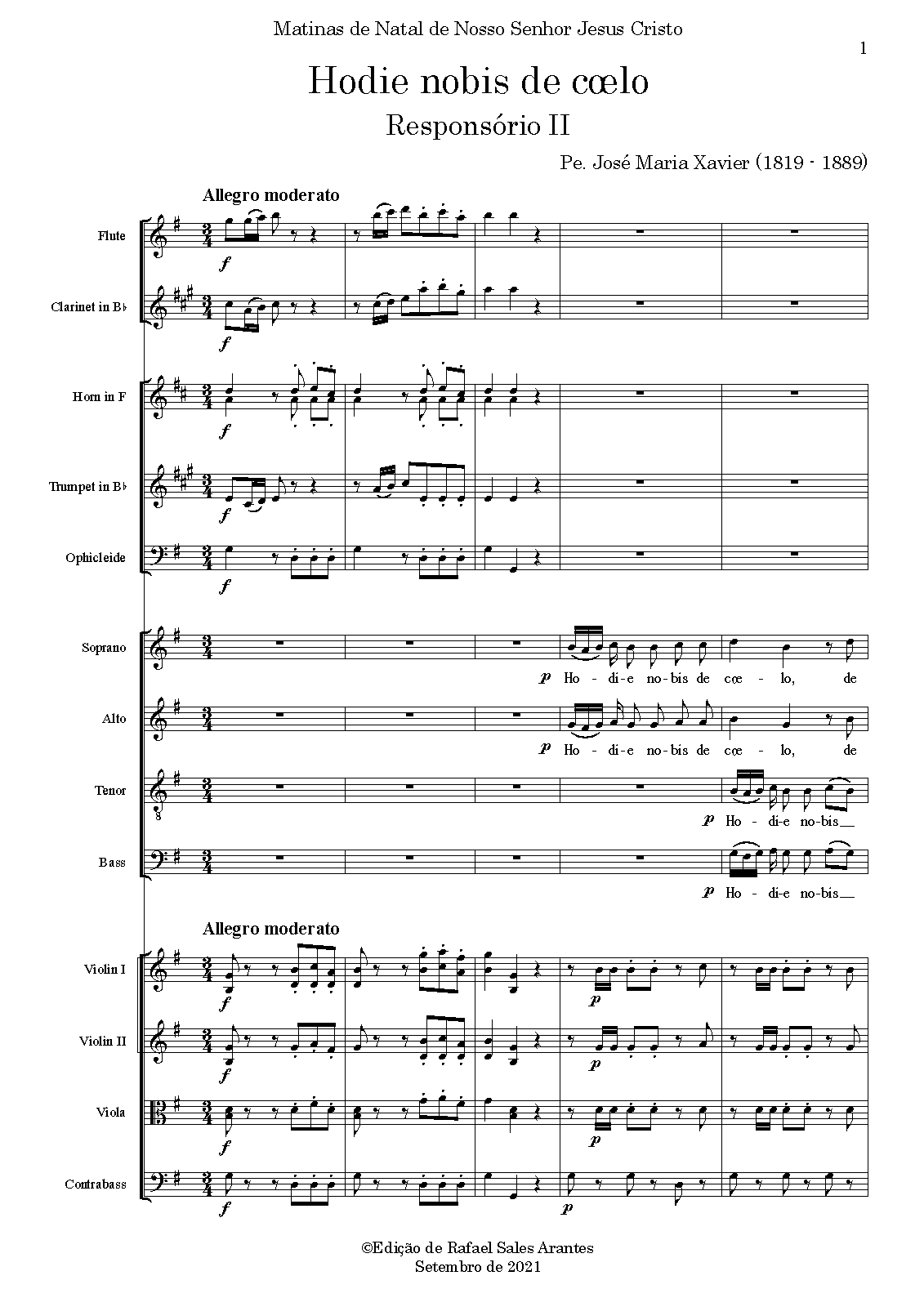 | Instrumentation | Voices: mixed chorus (SATB) Orchestra: flute, clarinet (B♭), 2 horns (F/C), trumpet (B♭), ophicleide, strings |