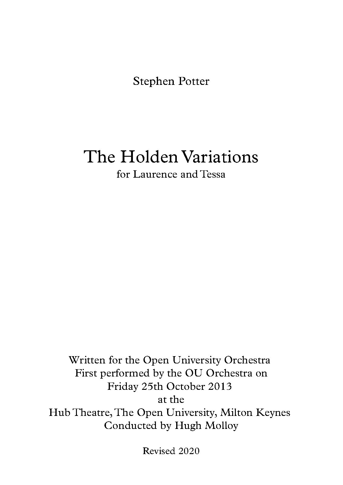 | Work Title | Holden Variations |