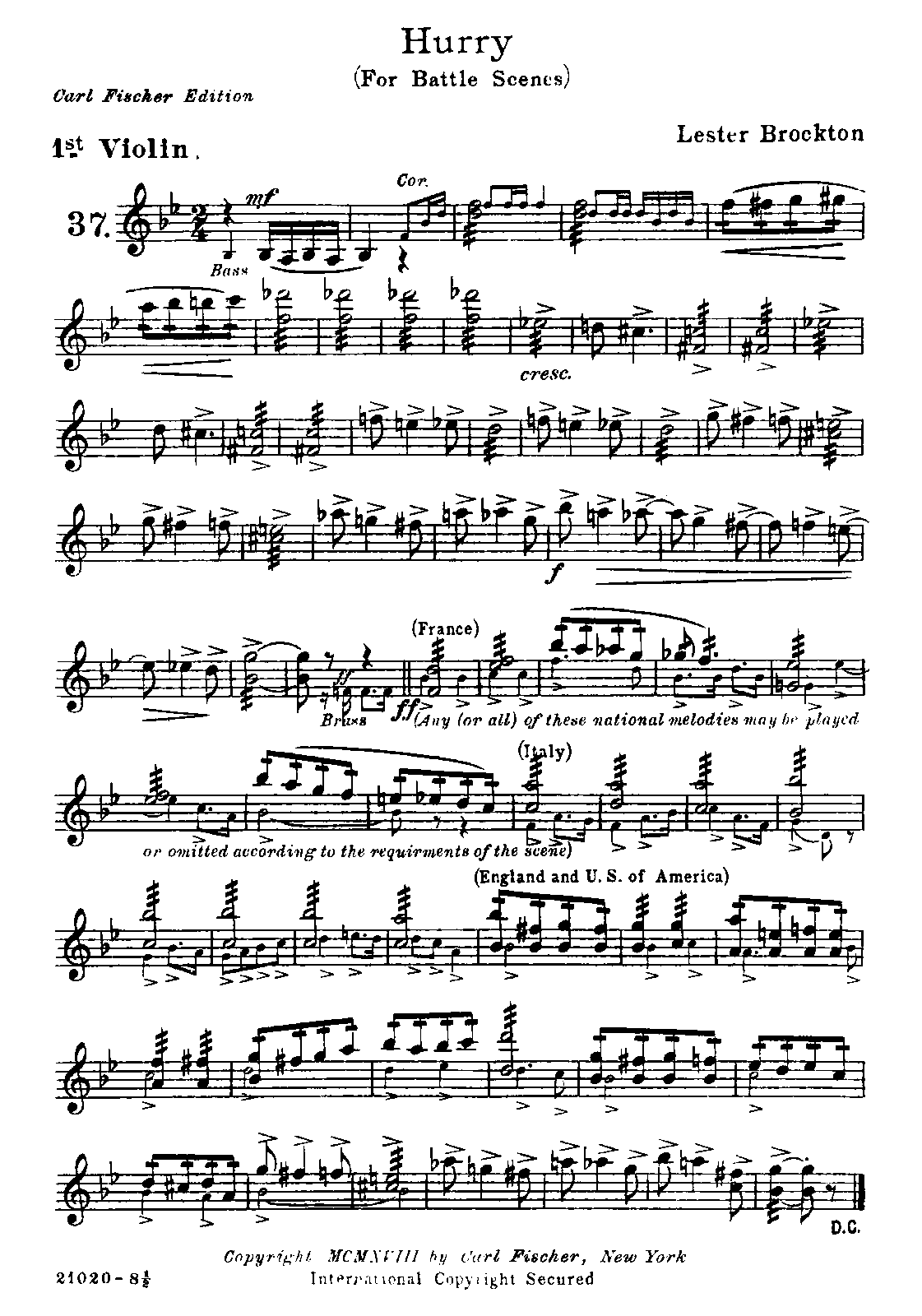 | Extra Information | Intended for use as accompaniment for silent movies. Published under the pseudonym Lester Brockton. |