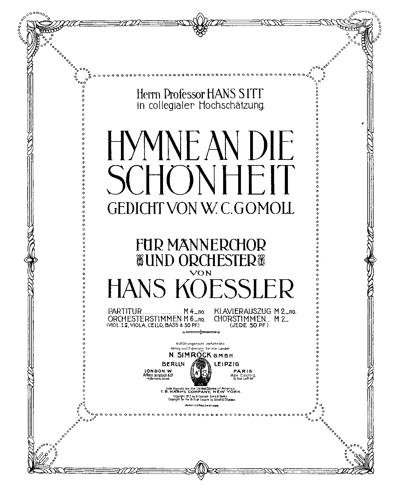 | Genre Categories | Secular hymns; Hymns; For male chorus, orchestra; |