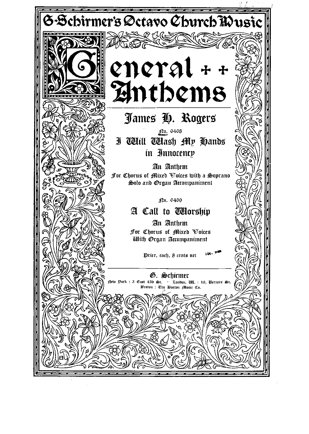 | Genre Categories | Anthems; Religious works; For voice, mixed chorus, organ; |