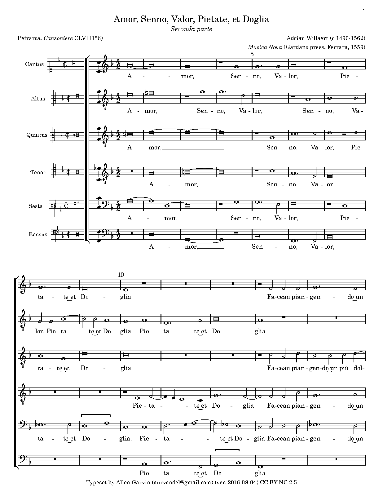 | First Publication. | 1559 in Musica Nova (Madrigal No.19) |