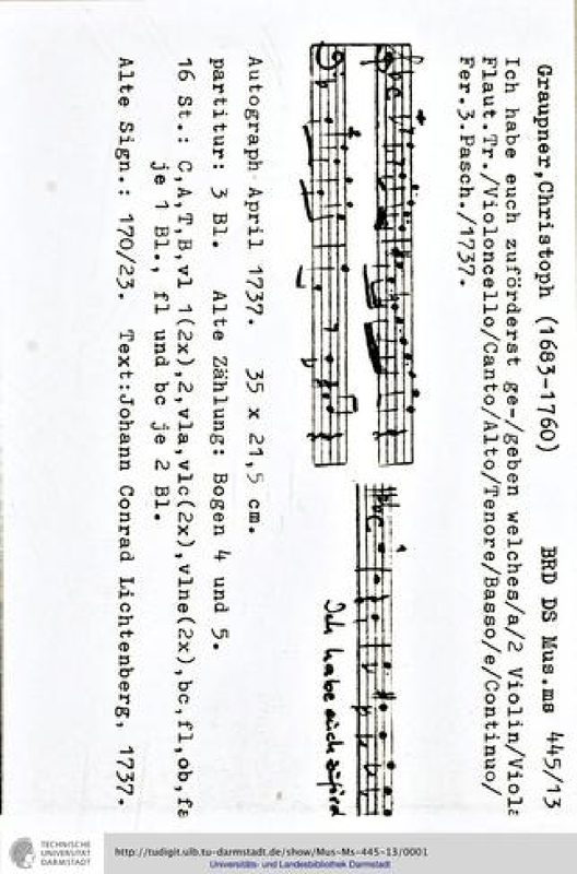 | Work Title | Ich habe euch zuvorderst gegeben, GWV 1130/37 |