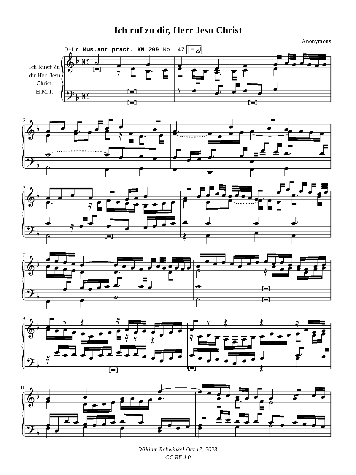 | Work Title | Ich ruf zu dir, Herr Jesu Christ |