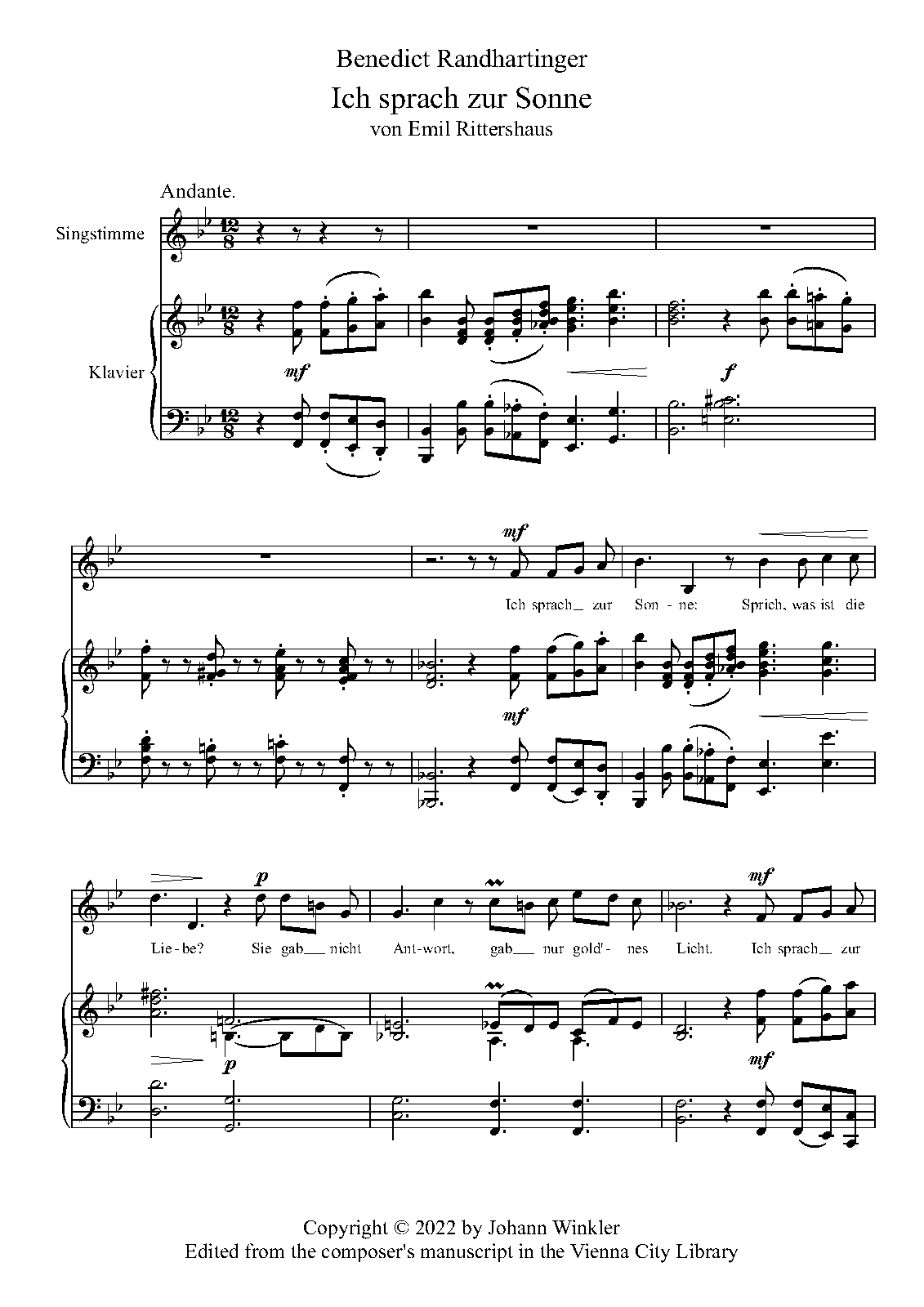 | Work Title | Ich sprach zur Sonne |