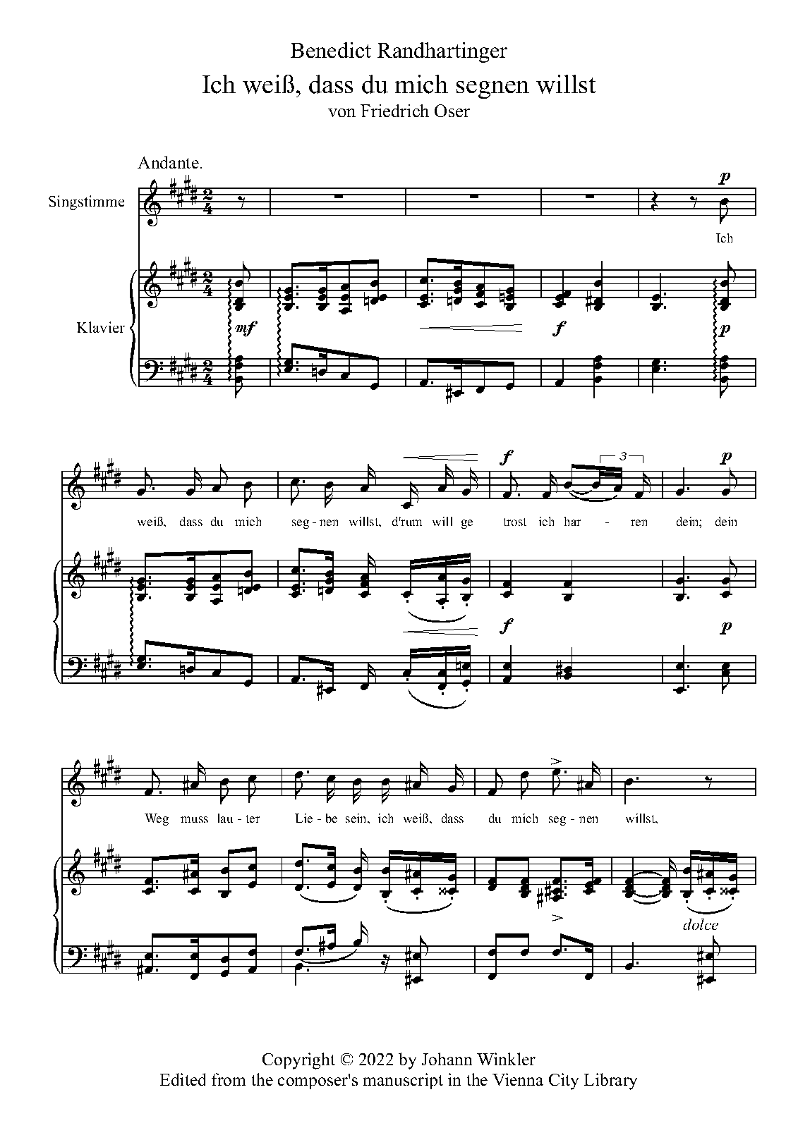 | Work Title | Ich weiß, dass du mich segnen willst |