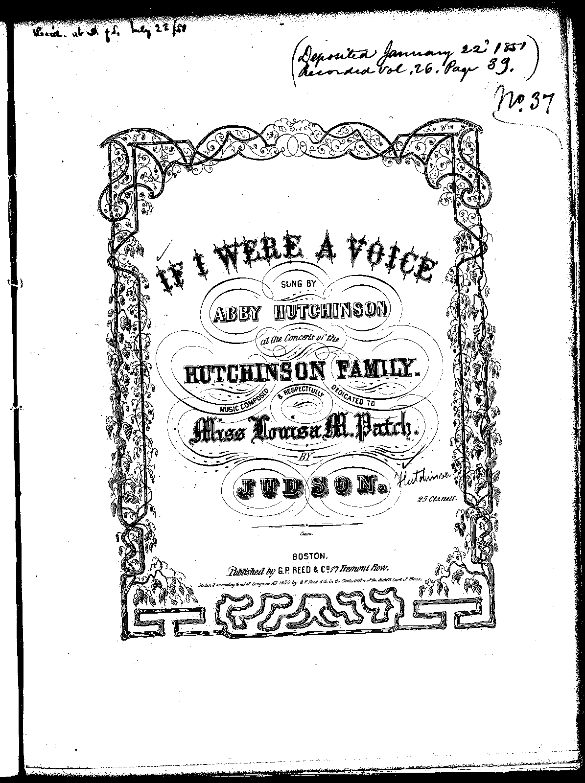 "Sung by Abby Hutchinson, at the Concerts of the Hutchinson Family".