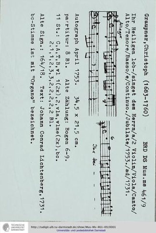 | Work Title | Ihr Heiligen lobsinget dem Herrn, GWV 1133/53 |